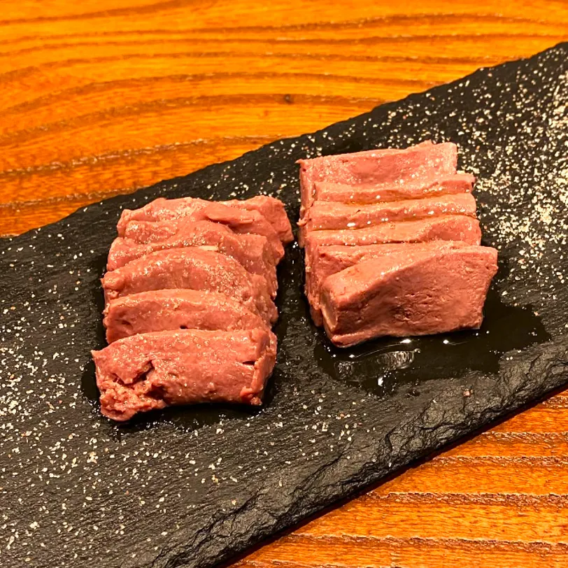低温調理で仕上げたタンとレバー